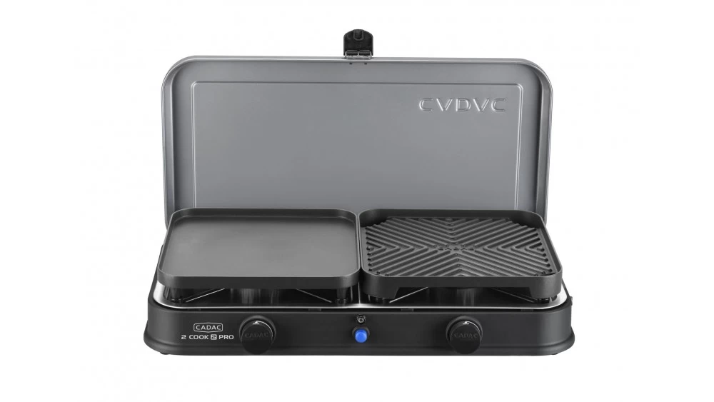 The Cadac 2 Cook Supreme is an extremely versatile camping stove which features two independent burners and an easy to light piezo ignition system. The Cadac 2 Cook Deluxe comes complete with two separate cooking surfaces which can be added or removed depending on what your cooking needs are. One surface features a non-stick ribbed griddle which is ideal for cooking meat, fish, chicken or vegetables. The second surface is a flat non-stick griddle which is ideal for fish, pancakes, and entire breakfasts. Both of these surfaces can be removed to allow the hob burner underneath to be used. This means you can cook and BBQ or cook and fry at your convenience.