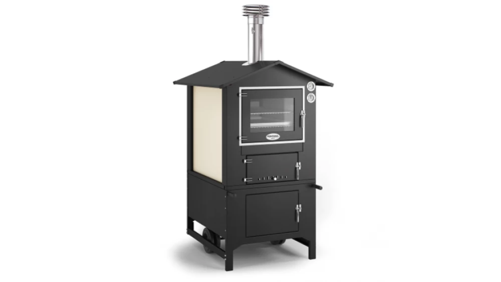 To allow for optimal cooking and even temperature, Fontana have designed and used an innovative dual chamber design which directs heat from the fire chamber around the cooking chamber containing multiple racks for cooking.