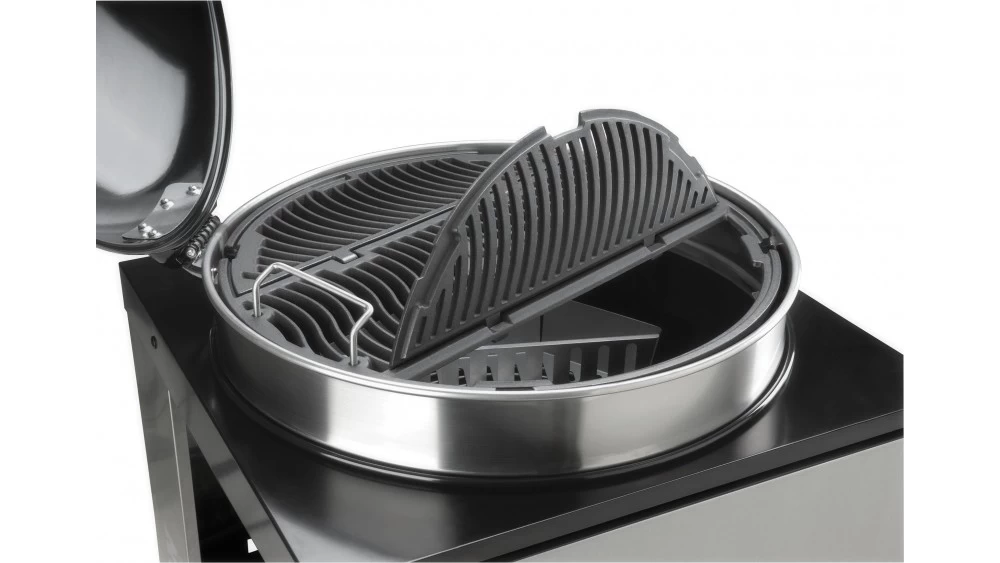 The Napoleon Pro Kettle BBQ comes equipped with the extra heavy cast iron hinged cooking grate. This will hold heat perfectly making the cooking experience easy and enjoyable. The hinged function of the grate allows charcoal to be added to the bowl at any point. On top of this the grate can be moved up and down with a total of three cooking levels to bring the food closer or farther away from the flame.