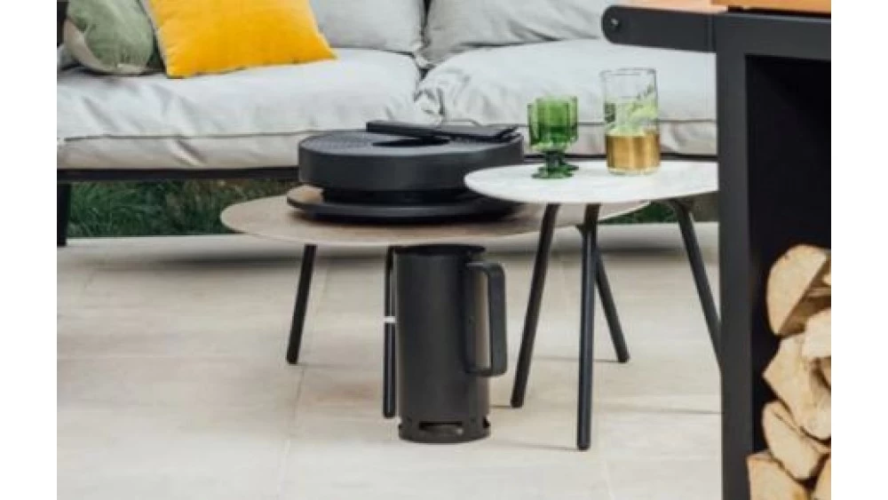 The Tabl’O is made out of black coated steel and sits on a heat resistant board and will be delivered alongside a handy tool to turn over the cooking plate and to open and close the air vents.