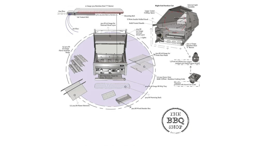 The Sunstone Sun Series 3 Burner Gas BBQ is the perfect centrepiece for any outdoor kitchen. Constructed completely from 304 grade stainless-steel which is fully welded for extra durability. This is combined with a double walled hood insulates perfectly and is finished with stylish polished accents.